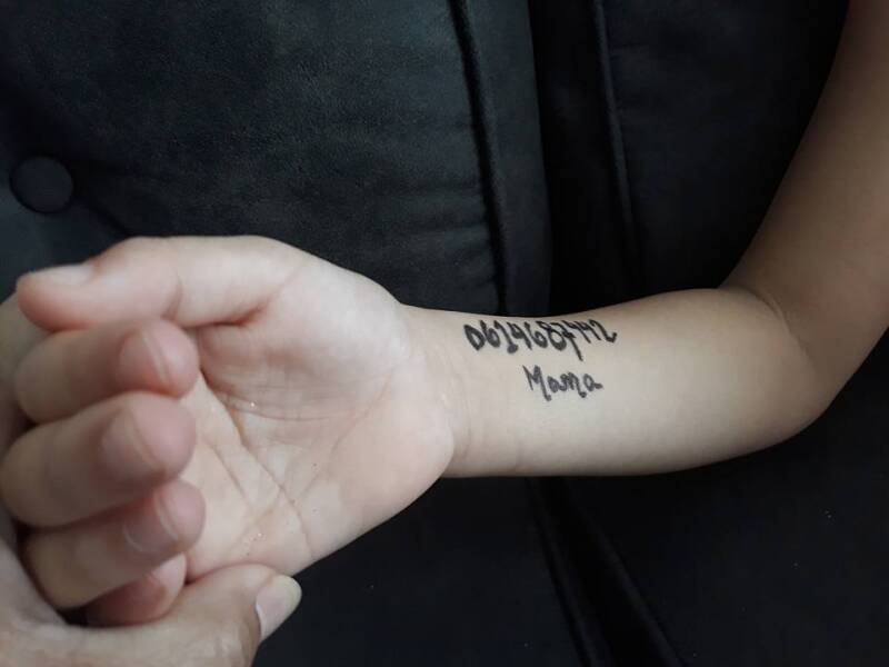 👍 Most importantly, use an SOS tag It's very crowded out there. Make sure your child is wearing an SOS tag with an easily contacted number written on it. If you dont have one, improvise by using a permanent marker and write it on your child's arm.